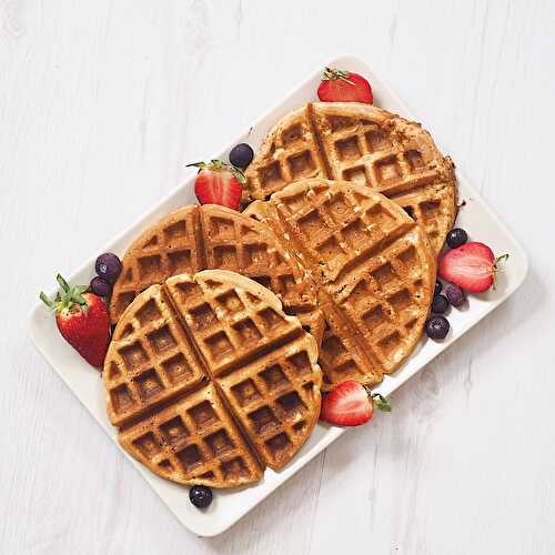 Four Ingredient Peanut Butter Waffles made with Oat Flour for a deliciously easy breakfast! Vegan + Gluten Free Four Ingredient Peanut Butter Waffles, make the perfect healthy brunch.