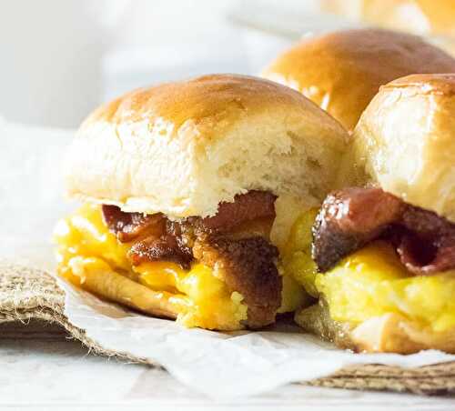 Filled with fluffy scrambled eggs, crispy bacon, melty cheese, and a delectably sweet glaze, these delicious breakfast sliders are worth waking up for!