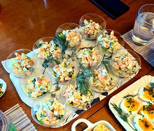 This gourmet appetizer recipe is made with shrimp, apple and Old Bay seasoning.