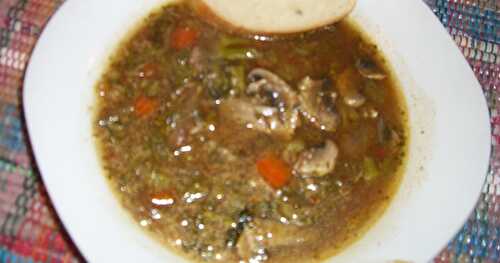 A hearty beef soup that’s loaded with nutritious ingredients; great for cold winter nights.