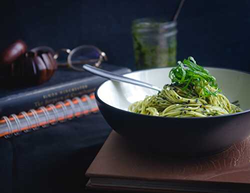 I used a mixture of shiso (green perilla) and basil leaves to make this Japanese-inspired shiso pistou.