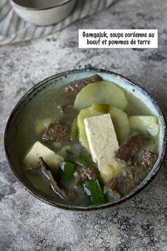 Le gamjaguk est une soupe coréenne avec une base de bouillon clair, du boeuf émincé et des pommes de terre.