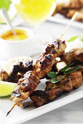 Grilled lemongrass chicken satay has all the complex flavors of Thailand, sweet, sour salty and spicy and served with a spicy peanut sauce.