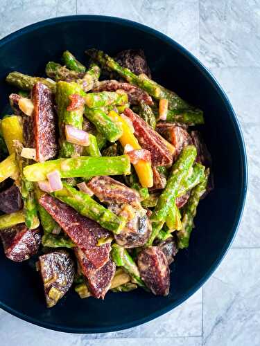With bacon and hard boiled eggs, this warm spinach salad with bacon and shallots will make you happy! Serve it warm alongside chicken or fish