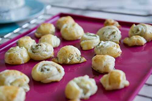 Twisted puff pastry filled with cheese and chicken with herbs makes it an elegant appetizer.