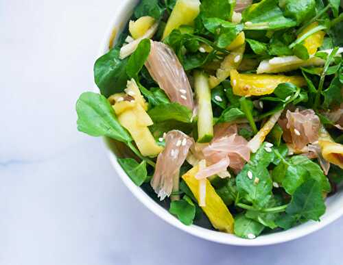 This rujak salad with watercress is a vegetarian version of Javanese rujak.