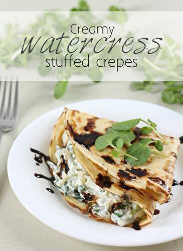 These stuffed crepes are filled with a creamy ricotta and watercress mixture, and drizzled with a tangy balsamic reduction.