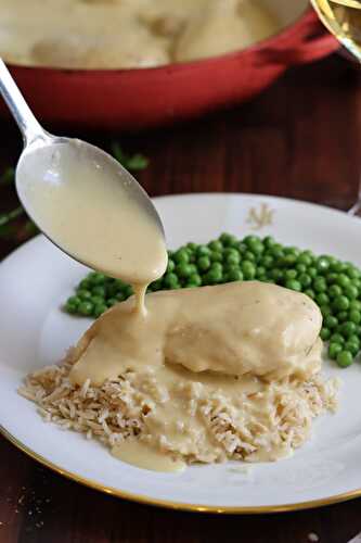 Veloute sauce is one of the 5 French mother sauces listed by Auguste Escoffier made with a blond roux and a white stock made from either chicken, veal, or fish.