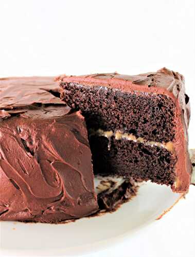 This gluten free chocolate caramel cake is so decadent and rich! Moist chocolate cake filled with salted caramel and covered in silky smooth chocolate fudge frosting.