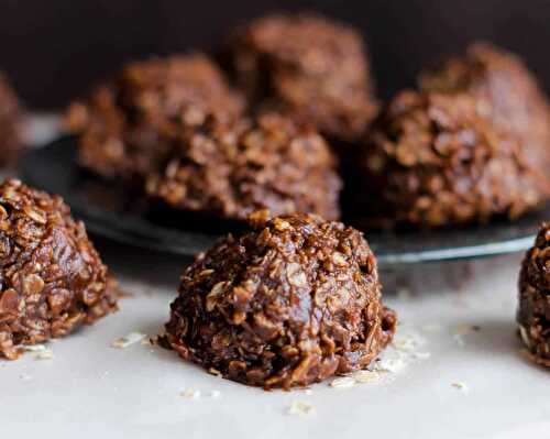 A decadent, truly satisfying dark chocolate no-bake cookie chocked full of old-fashioned rolled oats, dark chocolate, vanilla almond milk, vanilla and almond butter.