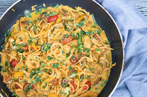Golden, creamy, veggie-loaded, sweet and spicy Chicken in Coconut Milk with Swoodles is a delicious and healthy one-pot dinner!