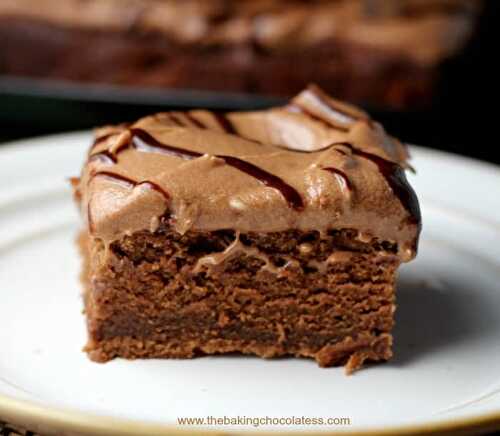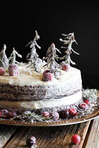 Moist and chocolatey cake layered with vanilla mascarpone cream cheese icing.