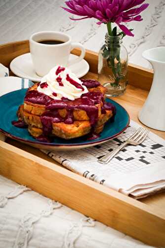 Breakfast in bed has never been never tasted so good until you’ve had this heavenly berry French toast topped with whipped mascarpone cheese.