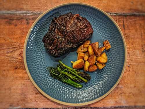 Juicy Rib-Eye Steak served with crips New Potatoes fried in Goose Fat, with Char-grilled Brocolli finished in Chipotle Chilli and Paprika Broccoli