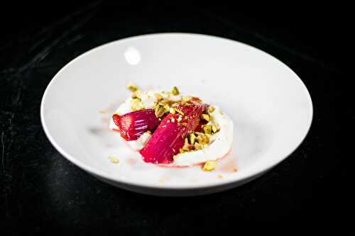 A simple braised rhubarb with cardamom, pistachios and vanilla.