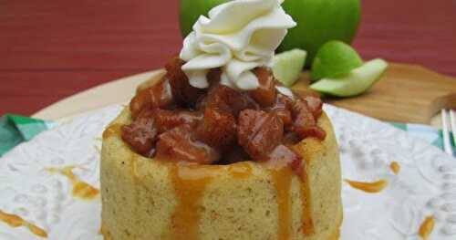 This Carmelized Apple Spice Cake is full of fall flavor! The cake is flavored woith Cinnamon Spice Bakery Emulsion, the apples are carmelized and topped with caramel and whipped cream.