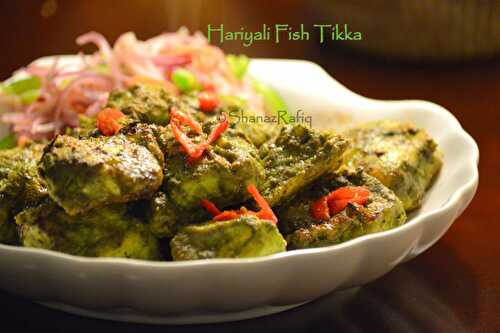 Hariyali Paneer Tikka is Indian cottage cheese coated in green paste and then grilled along with onion petals & capsicum.