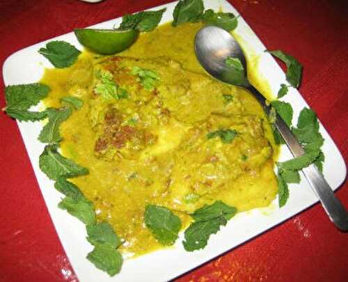 An authentic recipe from Mughlai cuisine, fresh water fish is cooked in pickling spices and served with rotis or naans.