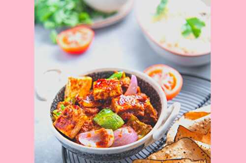 Kadhai Tofu Recipe is a semi-dry Indian dish made with panner.
