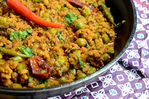 Kadhai Kheema is a restaurant-style mutton mince and green peas curry slow-cooked in a wok with Indian spices.