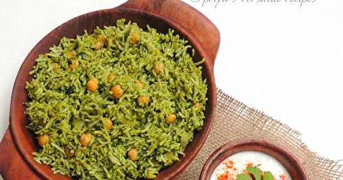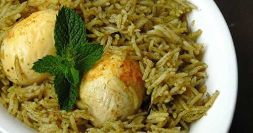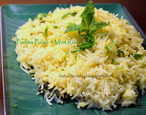 Pudina Pulao is a mint flavored rice cooked with loads of mint leaves and whole spices.