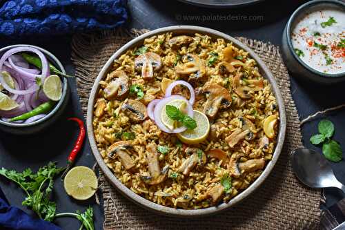 Chettinad Mushroom Pulao is a flavorful, spicy , one pot recipe made with mushrooms, jeera rice ( seeraga samba rice)and spices.