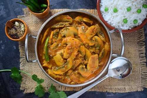 Spicy mushroom curry aka mushroom masala is a scrumptious and comforting recipe for mushroom gravy Indian.
