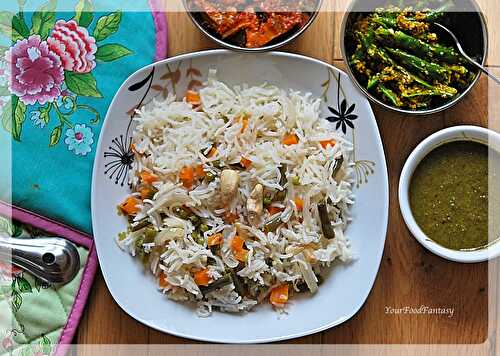 A delicious rice dish made with rice by topping up vegetables in it, and cooking along with spices.