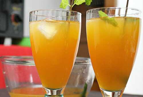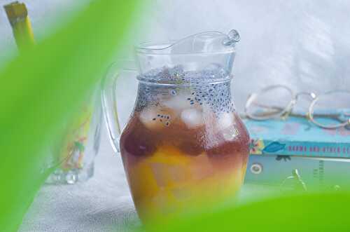 Easy and quick Mango-Peach Iced Tea that takes less than 15 minutes to make.