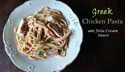 Greek Chicken Pasta with Feta Cream Sauce is a delicious pasta dinner with marinated chicken and tangy Greek flavors, all in a wonderful, creamy sauce made with feta cheese.