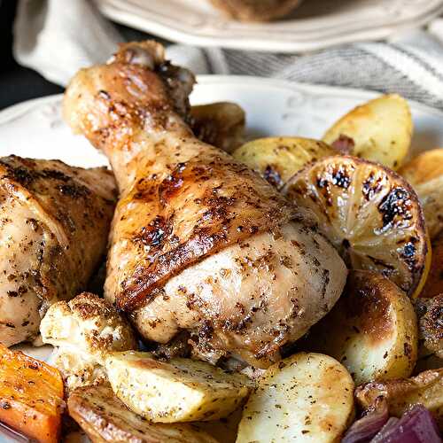 Baked chicken and potatoes in the oven is an easy, popular Greek recipe.