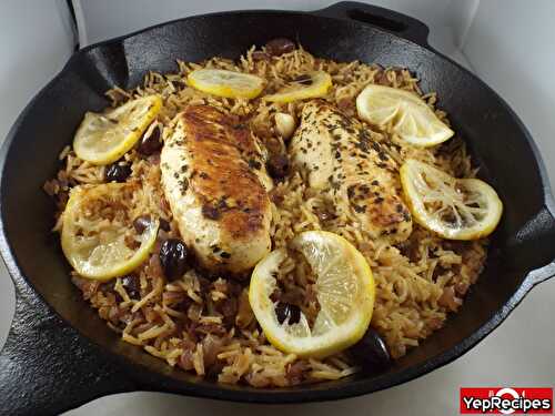 This chicken and rice bake is a delicious Greek recipe for a healthy dinner.