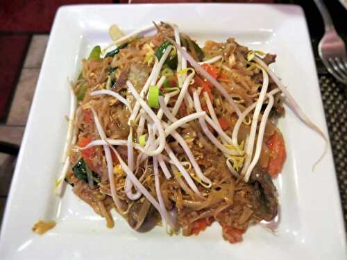 This recipe for Pad Thai has rice noodles, beansprouts, carrot, garlic, tamarind and more combine to make this classic Thai dish.