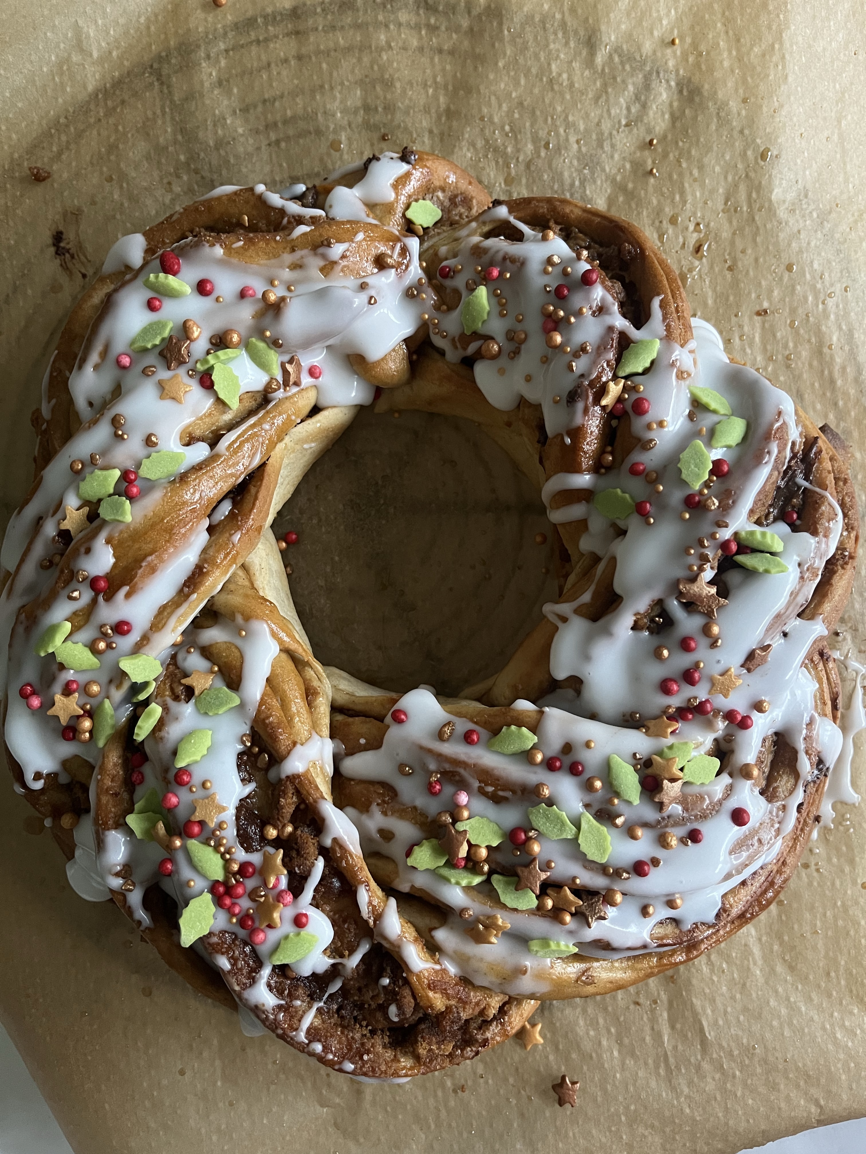 Using my cinnamon roll recipe, it's so easy to make this festive and beautiful gluten free cinnamon roll wreath for Christmas morning.