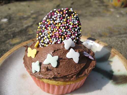 Here (at last) is the recipe for the celebration cupcakes I made for little S, the ones that were to be decorated with the rainbow drops I made on Thursday.