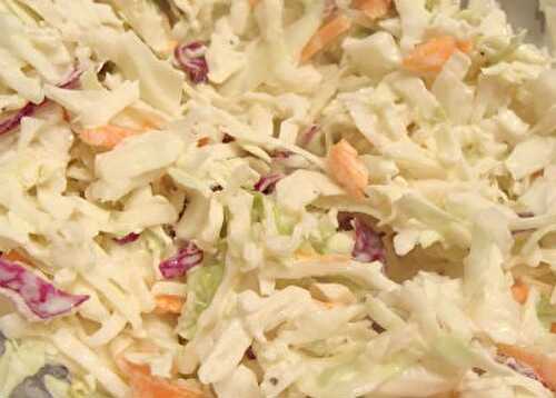 Crunchy cole slaw, with just-right creaminess and perfect amount of vinegar tanginess.