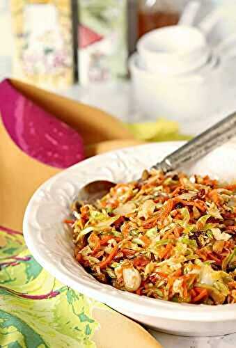 A crispy, crunchy slaw with a nice zingy dressing, this Asian slaw is one of my favorites.