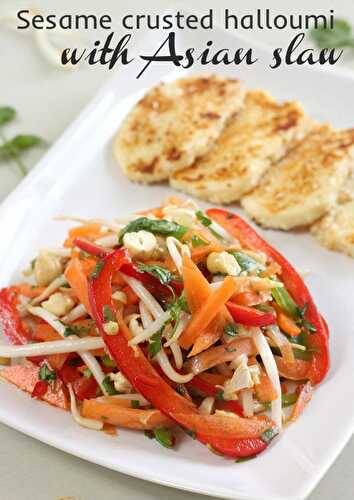 Sesame crusted halloumi with a simple Asian slaw - the creamy, salty cheese and the crunchy, slightly sweet slaw are the perfect combination!