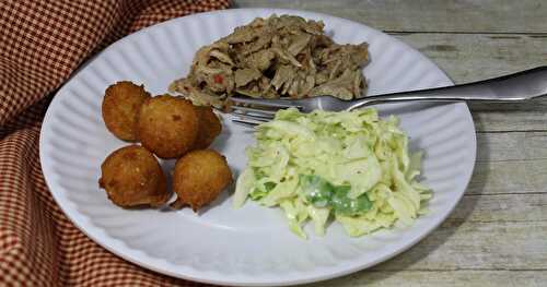 This North Carolina BBQ w/ cole slaw and hush puppies will make you happy and full!