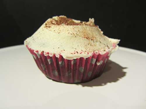 A cupcake with a velvet texture, red color, and of course a rich cream.