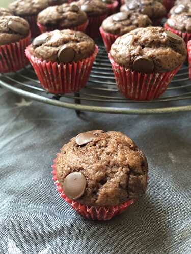 Rich chocolate muffins made with cocoa powder and chocolate chips.