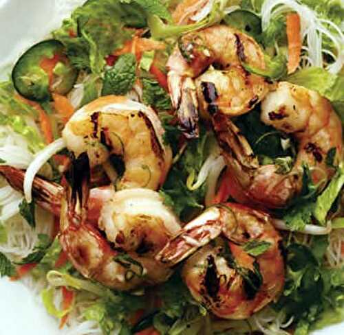 Shrimp and vegetables are cooked with noodles and typical Singapore spices to make this tasty, quick and easy Singapore shrimp noodles recipe