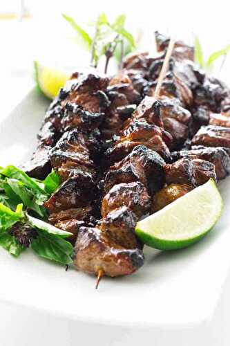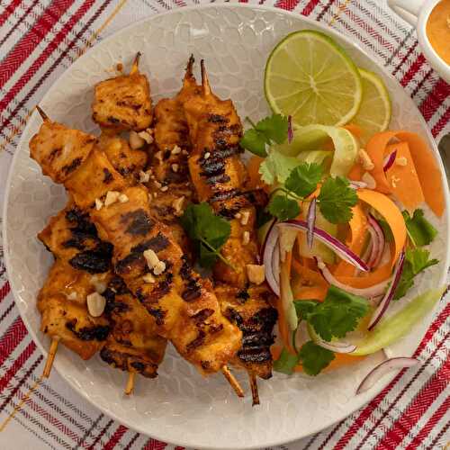 Thai Chicken Satay (or Sate) is marinated and grilled spicy chicken skewers that are served with a creamy and rich peanut sauce.