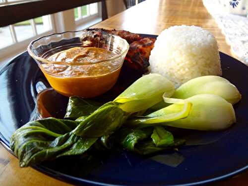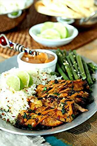 Chicken thighs are marinated in in a flavorful Indonesian marinade then grilled before being served with a homemade peanut sauce.