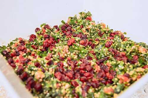 Tabbouleh with Pomegranate Salad is traditionally a parsley salad with just a small amount of bulgur for texture.