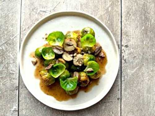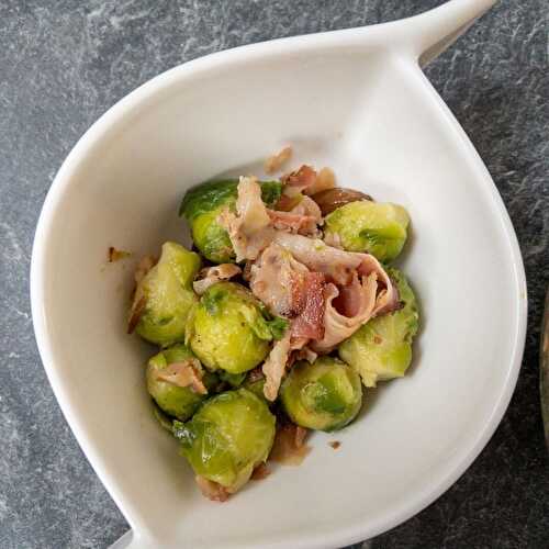 Brussels sprouts with bacon and chestnuts, a truly festive combination! This delicious side dish is prepared and ready to be served in just 20 minutes!