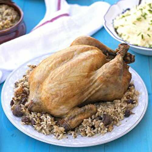 This whole stuffed chicken with rice and chestnuts is usually made for Christmas but you can serve it for any other special occasion like Thanksgiving dinner.