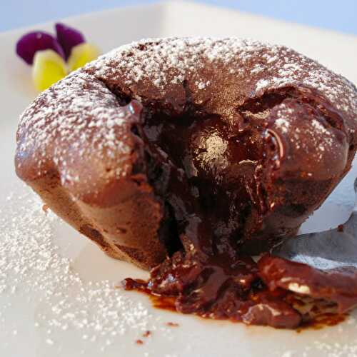 Quick recipe for French classic Moelleux au Chocolat or lava cakes with 5 basic ingredients.