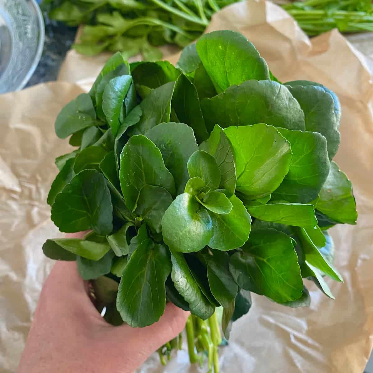 Watercress is a part of the Brassicaceae family of veggies, including kale, cabbage, and Brussels sprout.
