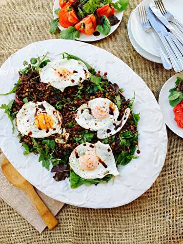 Healthy and tasty brown and green lentils salad with mushrooms, wasabi rocket salad, high in protein and such a filling vegetarian & utterly gluten-free dish.